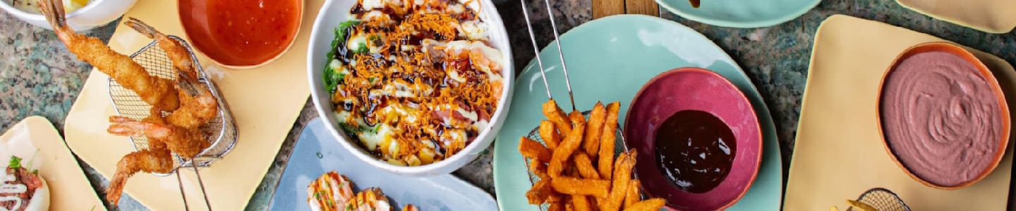 riso, salmone, tonno, ricciola, avocado, edamame, patata dolce, salsa huna, maionese alla barbabietola, pomodorini e olive