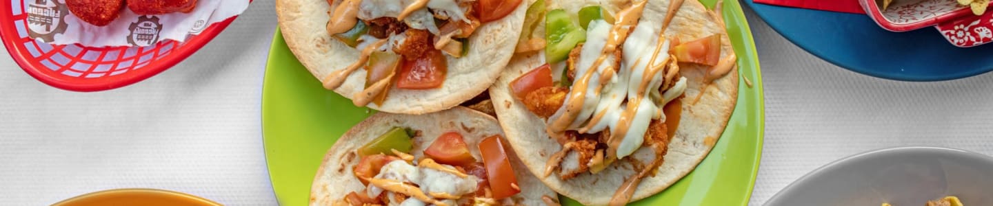 200g di macinato di bovino servito con riso, mais, jalapenos, ricoperto da cheddar e pico de gallo, servito con tortillas